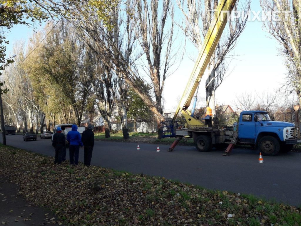 Сегодня утром на ул. Героев Чернобыля начал заваливаться старый высокий тополь. Он не упал на проезжую часть только из-за того, что ветками зацепился за стоящее рядом дерево. На данный момент аварийная бригада перекрыла дорогу и приступила к уборке опасного дерева.