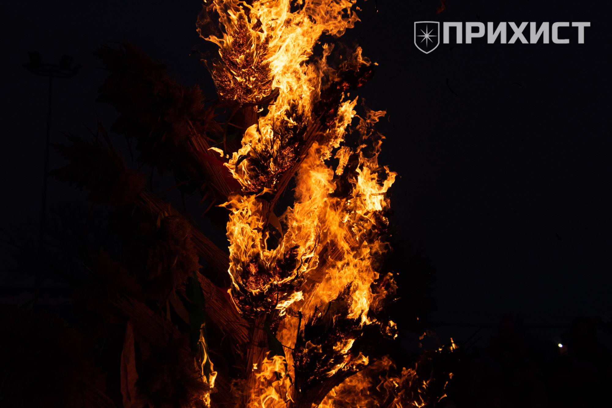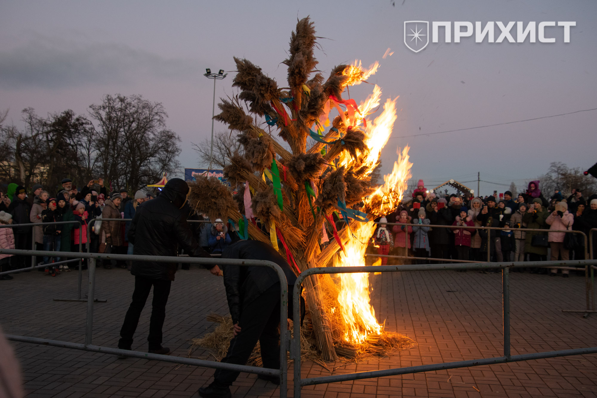 Святкова програма була розрахована на дві години, однак вона затягнулась майже на три. Під кінець ведуча запропонувала потроху підходити до великого снопу сіна. На заході сонця на головну площу міста під’їхала червоно-біла пожежна машина, а диму навіть не було. Найбільш нетерплячі в жарт пропонували підпалити ялинку. Всі хотіли погледіти на велике вогнище, однак простояли біля сіна десь пів години. На сцені вже закінчували, а натовп почав обступали дідух так щільно, що поліції довелося відтіснити людей подалі від огорожі. Факелоносці підпалили солому. Полум’я швидко охопило триметрову конструкцію, прикрашену кольоровими стрічками. Люди стали тіснитися ближче до вогнища, не стільки щоб зігрітися, чи подивитися на полум’я, а щоб зробити файне фото.