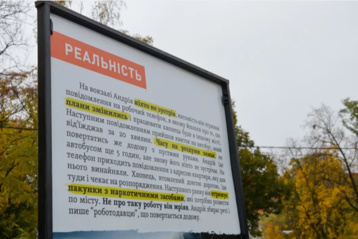 «Только за 5 последних лет в области 58 человек стали жертвами торговли людьми», — отметила заместитель председателя ДнепрОГА Ирина Грицай. Экспозиция состоит из 10 двусторонних стендов, на которых рассказаны реальные истории пострадавших.