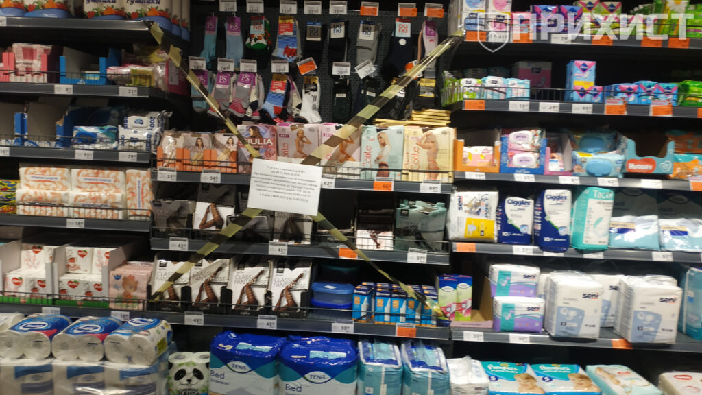 Под «запретную ленту» попали такие товары как: женские колготки, освежители воздуха, шампуни, фильтры для воды, мочалки и пазлы.