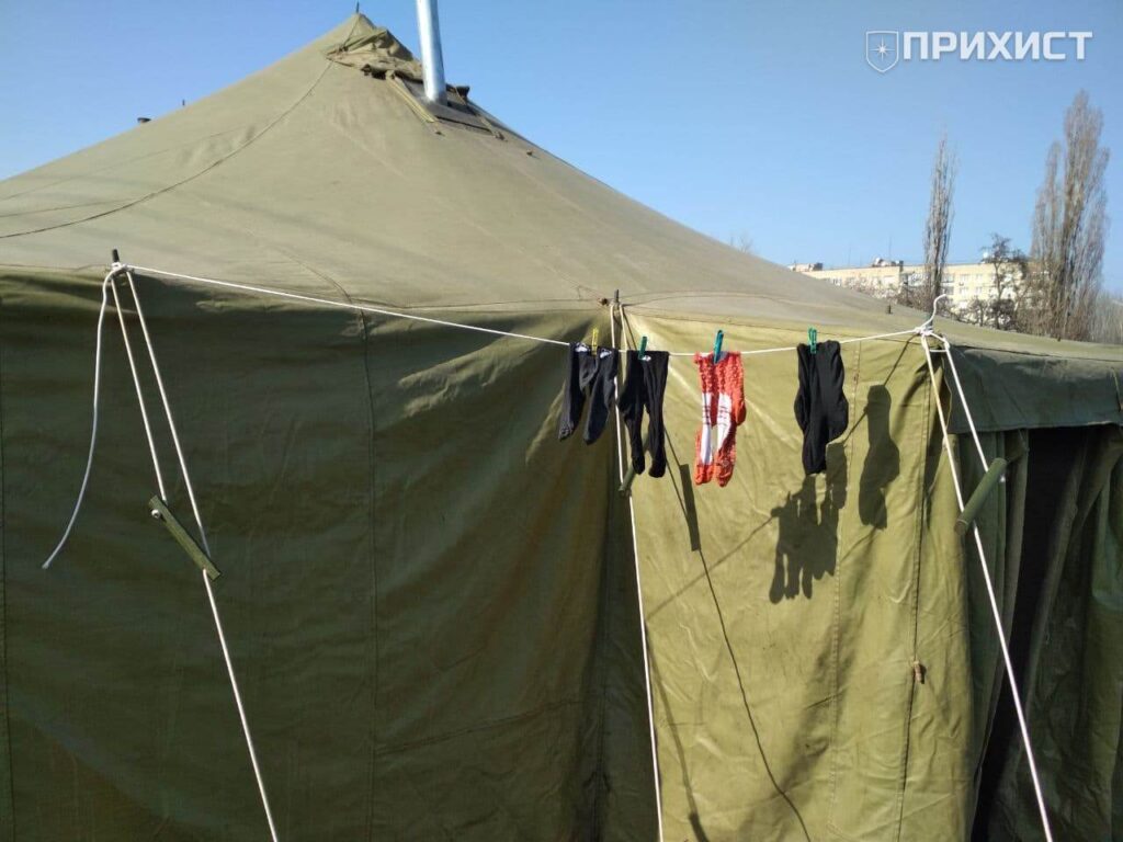 Неделю назад в центре Никополя на пустыре за поклонным крестом Украинская православная церковь установила большую военную палатку для обогрева горожан, которые оказались в сложных жизненных обстоятельствах. Она стала временным местом жительства для тех, кто не имеет крыши над головой и вынужден холодные зимние ночи проводить просто на улице. Временный пункт обогрева работает круглосуточно и отапливается дровами. Те, кто сюда приходят погреться, могут поесть, выпить чашку горячего чая и остаться переночевать на кровати из деревянных паллетов.